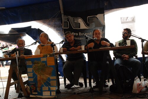 El Bicentenario de los pueblos de las resistencias históricas y cotidianas Los días 24 y 25 de mayo, la Plaza Congreso de la ciudad de Buenos Aires fue ocupada por voces luchadoras que venían desde distintas experiencias de lucha y resistencia y desde diferentes rincones del país. Allí, en ese acampe por El Otro Bicentenario, confluyeron los esfuerzos de un año de articulación y organización entre distintos colectivos representativos de los diversos sectores que vienen luchando contra este sistema depredador de la naturaleza y de la vida. Comunidades de Pueblos Originarios, asambleas socioambientales, bachilleratos populares, colectivos de trabajo barrial y de comunicación popular, organizaciones campesinas, estudiantiles, sindicales, culturales, empresas recuperadas, intelectuales y universitarios, fueron convocados a participar de otra mirada sobre el Bicentenario, con el propósito "de gestar el amplio espacio del "Otro Bicentenario" , el Bicentenario de los Pueblos, para juntos poder pensar ideas y acciones no sólo frente a los festejos y manipulaciones oficiales, sino que nos convierta en protagonistas colectivos de las transformaciones pendientes desde 1492 por la irrupción en nuestro continente del capitalismo genocida y saqueador".